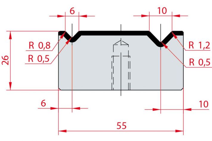 Cối chấn 2V L 8/12 α=90º H60 Max. T/m=80