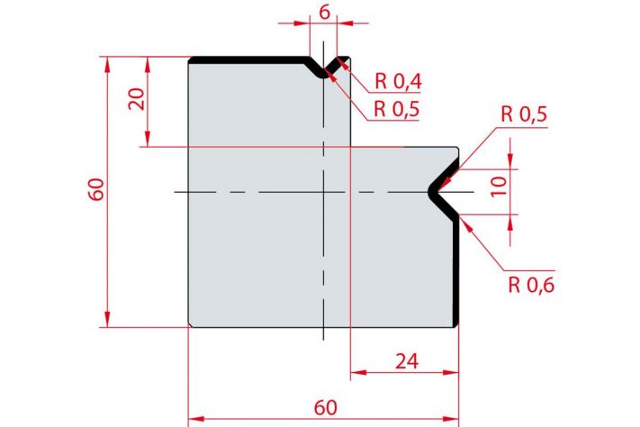 Cối chấn 2V L 6/10 a=90º H60 Max. T/m=80