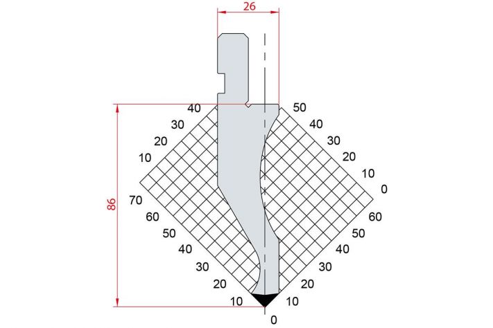 Dao chấn 90º 1021. H=86, R=0,8, Max T/m=100
